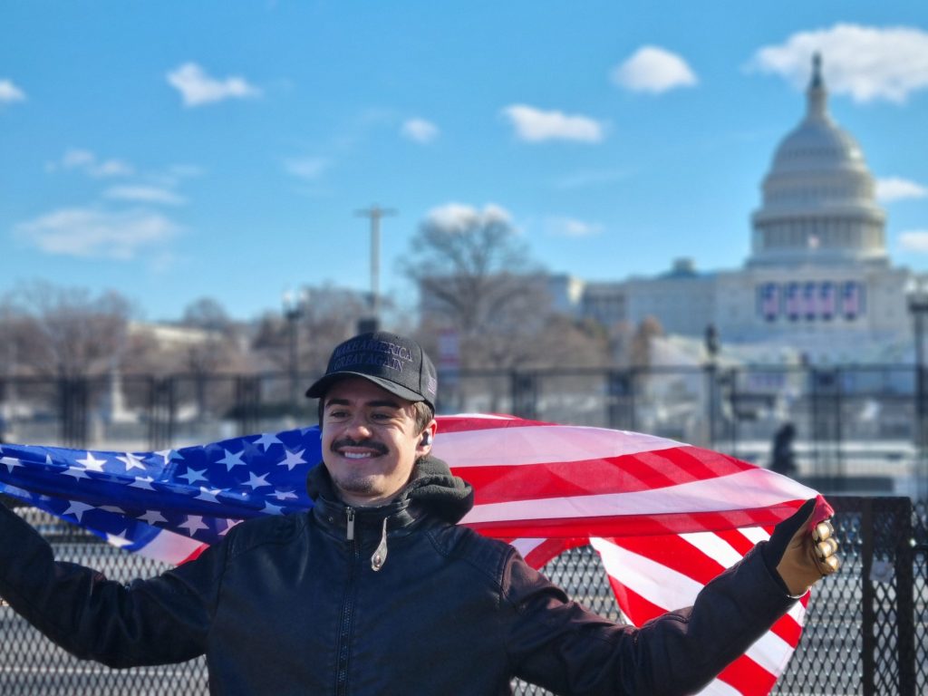 Aux abords du Capitole, un trumpiste heureux. © Yael GOUEFFON