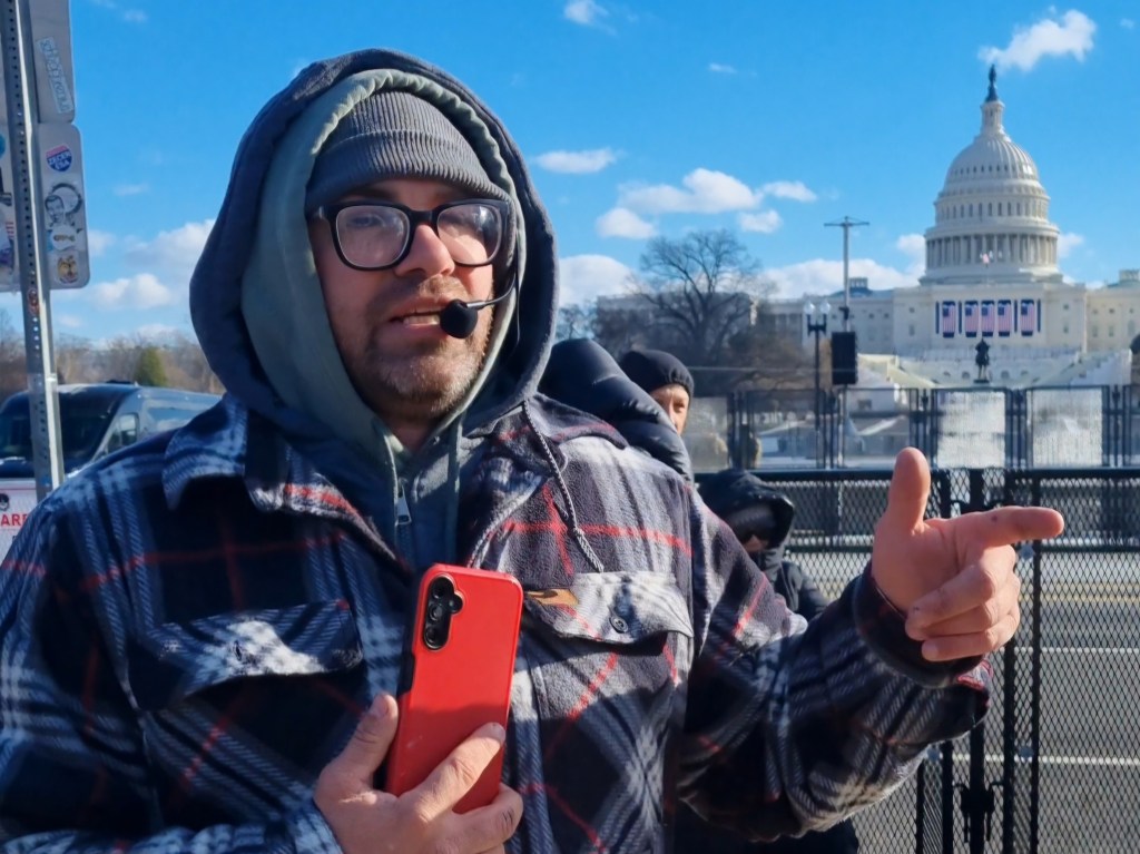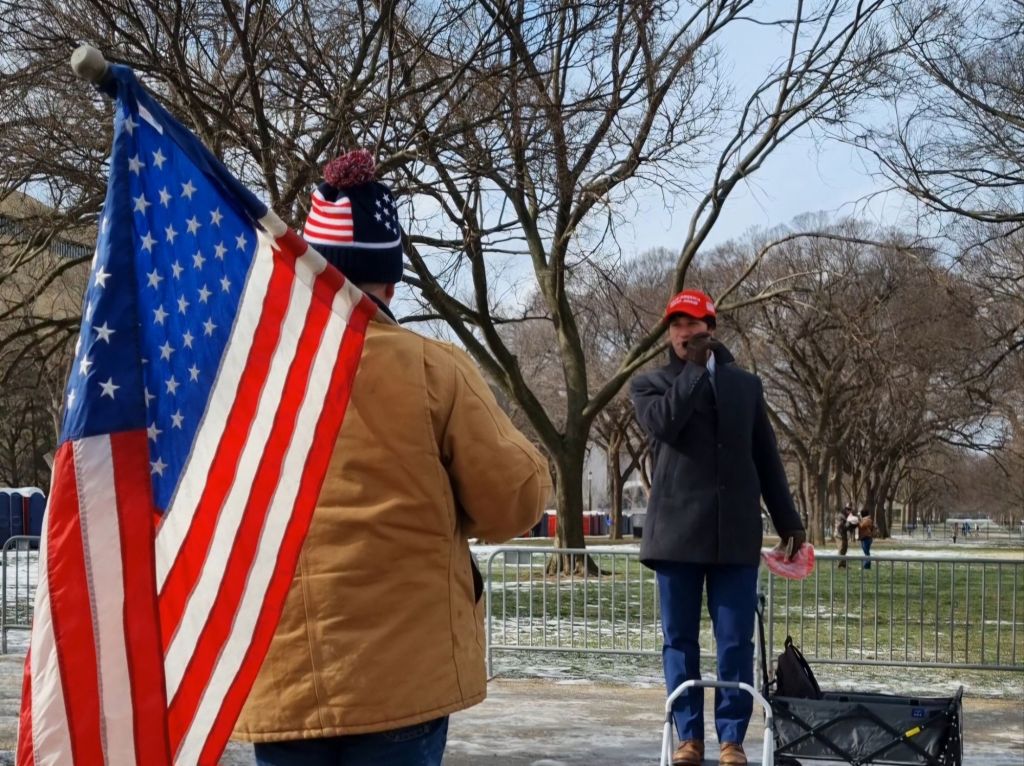 À quelques pas du Capitole, un petit jeu s’improvise. Daryl, un participant aux émeutes du 6 janvier 2021 au même endroit, répond aux questions du présentateur: « Joe Biden a-t-il été un bon Président ? ». Réponse : « Non ! ». C’était la bonne réponse, le militant trumpiste remporte une casquette « Make America Great Again ».
